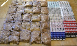 Policjanci zabezpieczyli papierosy i worki z tytoniem bez polskich znaków akcyzy
