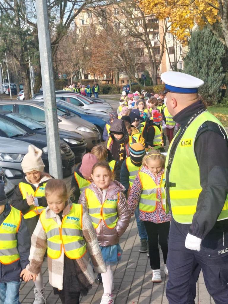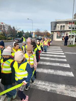 W ramach konkursowych działań policjanci z Komendy Powiatowej Policji w Śremie wręczyli uczniom kamizelki odblaskowe oraz odblaski ufundowane przez Wojewódzki Ośrodek Ruchu Drogowego w Poznaniu. Do działań promujących bezpieczeństwo na drodze włączył się też sierż. Pyrek maskotka wielkopolskiej Policji, który odwiedził uczniów „czwórki”. Funkcjonariusze wspólnie z dziećmi i nauczycielami promowali też noszenie odblasków wśród mieszkańców śremskiego osiedla Jeziorany. Podczas wspólnego spaceru, uwagę przechodniów zwracał pomysłowy, najdłuższy w Śremie – odblask, który uczniowie nieśli promując ideę bycia widocznym w ruchu drogowym. Cała odblaskowa społeczność „czwórki” uczestnicząca w konkursie przechodziła też przez jezdnię, kiedy ruchem kierował policjant.